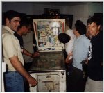 Participantes: 11, en tres grupos: Oni, Inderman, Manuel y Gonzalo en un grupo, Paturlas, Juaney, Toni y yo mismo, en otro y los restantes, Magnaball, J-REX y Perimaton en el tercero. Mientras los anfitriones se iban a por unas cervezas, el primer grupo empezó con la TZ mientras nosotros comenzamos con la Drácula. Oni empezó pronto a destacar con la TZ, algo increíble teniendo en cuenta que 5 minutos antes de empezar le estuve contando las reglas un poco por encima, un monstruo si señor. Tampoco Gonzalo lo hizo mal del todo, aunque un poco corto teniendo en cuenta que en su casa tiene un par de TZ para entrenar. Pero es que esta máquina en concreto se encontraba con un nivel de inclinación bastante bajo, algo que perjudicaba a los que normalmente jugamos con un nivel de inclinación mas acentuado. Mientras tanto nuestro grupo se peleaba con la Drácula, que comenzaba a dar fallos. Después de iniciar dos partidas y de intentar arreglarla se decidió sustituirla por una Whinter Water, una máquina preciosa, todo hay que decirlo. Después de ver jugar a Juaney, Paturlas y Toni… maldije mi suerte, desmoralizador jugar con tipos que parecen que duermen con el pinball bajo el brazo… en fin, la sorpresa la dio Paturlas, que pese a su cara de cansado nos dio un repaso a todos con sus 838 millones, bastante lejos de los 366 de Juaney, que ya son, ya… aunque se oyeron voces que sugerían linchar a Paturlas o al menos romperle los dedos, la propuesta no fructifico imperando el juego limpio.